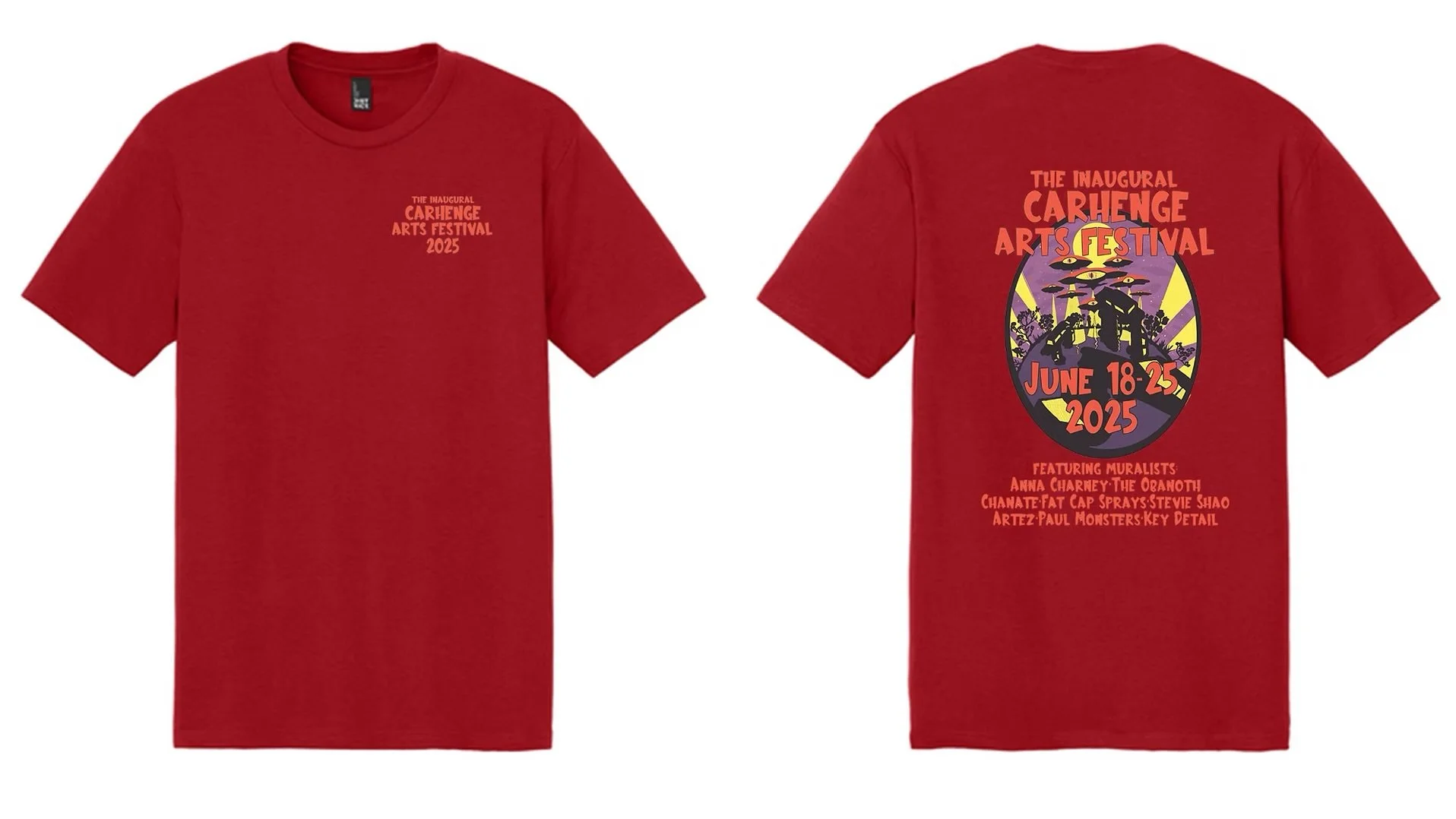 2025 Carhenge Mural Fest T-Shirts $35Featuring Art by local artist Timm Hoff and the 2025 muralist lineup. Printed in Alliance by Studio A. Select Color and Size Carhenge Arts Festival T-Shirts $35Carhenge Arts Festival Logo T-Shirts, printed in Alliance by Studio A. Select Color and SIze